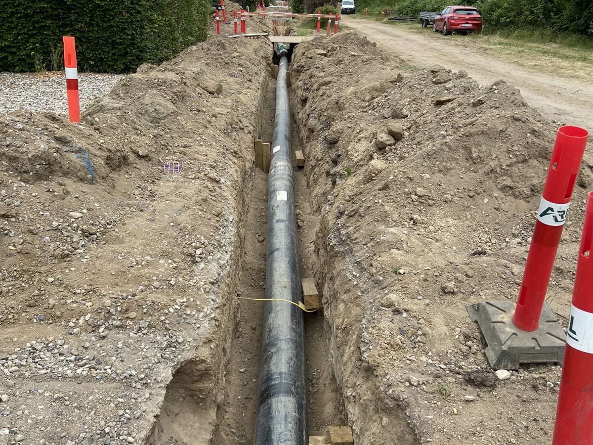 Efter rørene er lagt efterprøver gasselskabet EVIDA respektafstanden mellem fjernvarmerør og gasrør og konstaterer at denne ikke er overholdt.